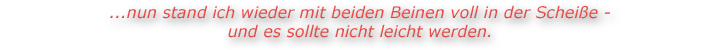 Verdammt, was hat alles nach dem ersten Schlaganfall wieder funktioniert. Trotz depressiver Weihnachtsstimmung ging es mir seelisch und moralisch viel, viel besser als jetzt. Ich kann mich drehen und wenden wie ich will, der Arsch bleibt hinten - der Schaden ist da.
